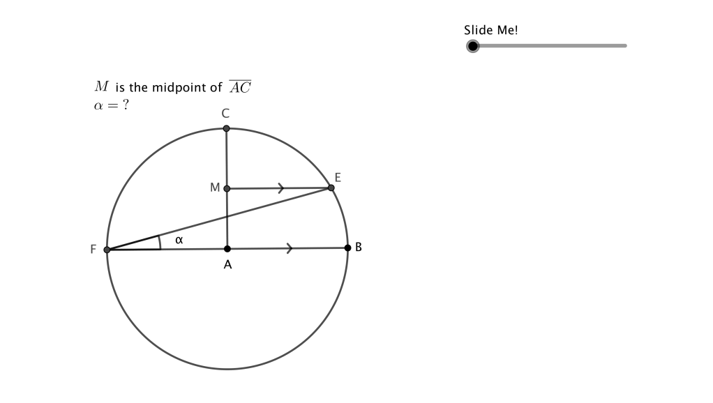 The problems here come from Geometrische Wiederholungs und Denkaufgaben by Paul Eigenmann (Ernst Klett Verlag, Stuttgart, 1964). This book is rather difficult to obtain outside of Germany: the only copy I located near me is at the University of Illinois Urbana-Champaign library. I was introduced to these problems by a paper xerox copy credited to Peter Genta (Carlinville High School, Carlinville, IL, 1988). I started re-creating the problems in GeoGebra and rendering them as PNG. The original notebooks for most of these can be found at the tech page. I will update this gallery as re-create more of these. The numbering in the filenames comes from the original source. (I would re-post scans of the original source, but I am concerned about copyright — at least if I re-create them in GeoGebra, as I understand it, the images are my own to redistribute.)